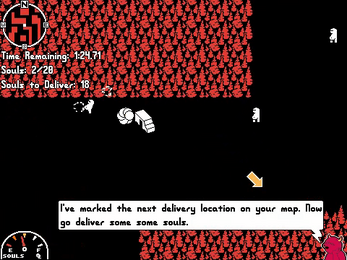 Instructions: Drive the truck to mow down the wandering damned. Once they are hit, their souls will release and collect in your truck. Once you’ve acquired enough souls to make your delivery, drive to the location marked on the map and park in front of the designated lava pit to deliver the souls. The car can only hold 20 souls at a time, and you will receive a fuel bonus for early drop offs, so try to get to your destination as fast as possible while not crashing!